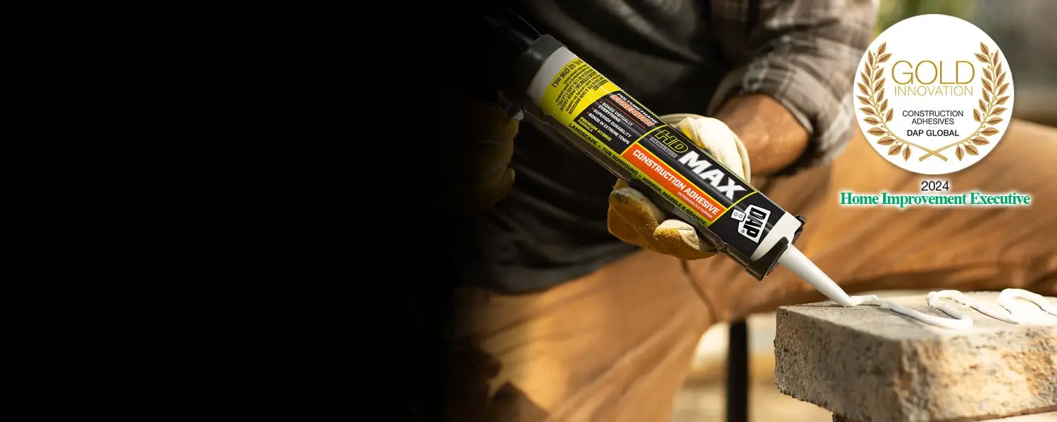 DAP® HD Max Construction Adhesive is a 2024 Home Improvement Executive Award winning product. Use the premium hybrid formula and polyurethane strength to bond both porous and non-porous surfaces.
